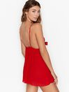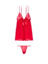 Get glamorous in georgette, with pretty pleats, a shiny ribbon bow and a matching thong panty. Triangle lace cups Empire waist with satin bow Adjustable straps Matching thong panty Imported.
