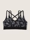 Lightly Lined, wireless with removable padding. Pull-on style with V-neckline with adjustable straps. PINK logo elastic bottom band. Low Impact, 4-Way Stretch, Wicking Fabric, Quick Dry fabric.