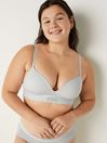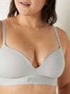 No underwire. Push-up Rhinestone logo band. Fully adjustable straps. Wear classic or cross-back. Hook-and-eye back closure.
