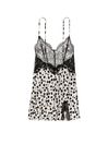 A slinky little dress combining sheer lace on top with a lustrous satin skirt that skims over curves. Unlined Wireless Adjustable straps Side slit Hits above mid-thigh Machine wash Imported.