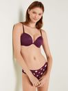 Structured, underwire cups Most push, double bump padded cup Fully adjustable straps - wear classic or cross-back Hook-and-eye back closure Imported: recycled nylon/spandex.