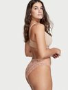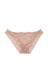 Romantic lace for your top drawer in a flirty cheekini cut. Finished with allure lace with silver threading. Low rise. Allover lace. Minimal back coverage, lots of cheek peek.