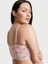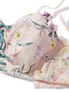 Dazzle in sheer mesh and exquisite floral embroidery. It's all brought out by a decorative lace-up front, center bow accent, and plunging neckline that leaves ample space for your favorite necklace. Unlined. Wireless. Adjustable straps. Back hook-and-eye closure. Floral embroidery over sheer mesh. Plunge neckline. Boning throughout. Decorative lace-up front. Center lingerie bow.
