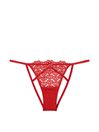 Skin bearing, but never overbearing. Swirling heart shaped lace is lined with satin binding and sealed with on theme hardware. Low rise. Heart lace. Heart hardware accent. Ouvert silhouette. Pure cotton panel. No back coverage.
