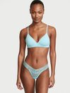 Watch this lace. Your go-to Lacie thong is better than ever in a soft-and-stretchy floral waistband and dotted mesh base. Low rise. Lace waistband lays flat for no show-through. Pure cotton panel. No back coverage.