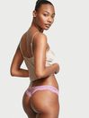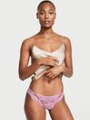 In allover delicate floral lace, this gorgeous thong showcases flirty peekaboo cutouts at the front, plus scalloped edges for a finishing touch. Low rise. No back coverage. Machine wash.