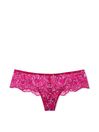 Bring on the glamour with lovely allure lace featuring silver threading and an ornate ruffle. Low rise. No back coverage. Hand wash.