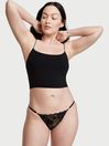 A whole new level of comfort-featuring adjustable straps for our most customizable fit yet. Signature V-hardware adds an opulent touch. Panty features a low rise silhouette with lace that lays flat for no show-through. Pure cotton panel gusset and adjustable side straps. Moderate back coverage: shows a little, but not all.
