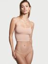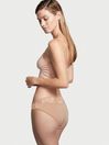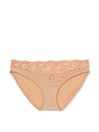 A little bit of this, a little bit of that: our streamlined and smooth bikini is topped with delicate floral lace at the waist;that's made from at least 50% recycled yarns. Low rise. Lace made with at least 50% recycled yarns. Lingerie ribbon and logo charm at front. Moderate back coverage: shows a little, but not all