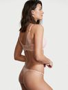 A whole new level of comfort-featuring adjustable straps for our most customizable fit yet. Its soft, stretchy fabric is partially made from recycled materials, and our signature V-hardware adds an opulent touch. Low rise. Pure cotton panel gusset. Adjustable side straps. No back coverage. Gold V-hardware. Partially made from recycled materials. Machine wash.
