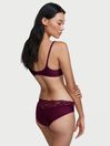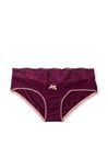 A little bit of this, a little bit of that: our streamlined and smooth hiphugger is topped with delicate floral lace at the waist that's made from at least 50% recycled yarns. Low rise. Lace made with at least 50% recycled yarns. Lingerie ribbon and logo charm at front. Picot trim at legline. Full back coverage: shows curves, not skin.