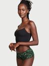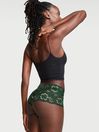 Bold blooms. A shortie boasting a made-to-be-seen floral motif that's dyed for contrast. Low rise. Ribbon and charm detail in front. Moderate back coverage.