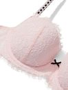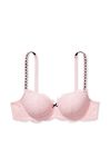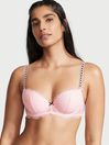 Unlined without padding. Underwired. Adjustable straps. Back hook and eye closure.