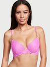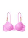 Guaranteed to cause a chain reaction. The latest way to wear our #1 push-up features straps embellished with chain link trim, which adds a glam touch of bling to this feminine lace style. New hardware details, same plush padding-now softer than ever for the lift and natural cleavage you love. Lift ; Lining Push-up padding adds 1 cup size; Underwire cups Straps ; Hooks Adjustable straps; Double row of hook-and-eye back closures Details ; Fabric Plunge neckline Embellished chain shine strap detail Hand wash; Imported.