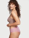 In soft, stretchy and lightweight micro fabric, this streamlined cheeky is played up with a delicate floral lace inset at the front, plus lace trim at the sides. Low rise. Minimal back coverage, lots of cheek peek