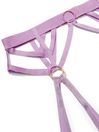Extra strappy equals extra sexy when it comes to this graphic, harness-style suspender belt worthy of a Bond girl. Back G-hook closure and slide at waist. Fully adjustable garter straps. Gold-tone. O-ring hardware accents.