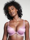 The ultimate push-up made more glamorous with details that dazzle, from a delicate lace band to golden V-hardware accents.; Lift ; Lining; Maximum lift (adds 2 cup sizes) Underwire; Straps ; Hooks; Adjustable straps; Back hook and eye closure; Details ; Fabric; Lace band; Cutout cup details with V-hardware accents; Crisscross front detail; Hand wash; Imported.