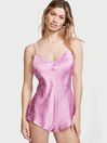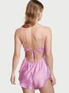 A subtle V-neck, fluttery shorts, and floral-embossed stretch satin? It's a yes from us. An open back with adjustable ties brings it all together.; Jacquard stretch satin Adjustable straps Open back with adjustable ties 2.5" inseam Machine wash Imported ;