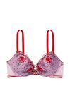 Dotted mesh, dreamy rose embroidery, and metallic gold thread give this push-up bra extra style points, while a plunge neckline makes it easy to wear with just about anything. Push-up padding adds 1 cup size. Underwire. Adjustable straps. Back hook-and-eye closure. Velvet logo straps.