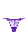 A modern shape featuring our interstellar star embroidery. Pair with the matching. Strarstruck Bra, Garter, and Hosiery for the perfect dreamy bedroom set. Low rise. String waist. No back coverage, lots of cheek shows.