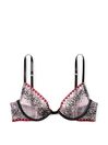 Note to self: An unlined demi in cursive love embroidery, faux leather details, and heart trim is a must-have. Unlined. Underwired. Adjustable faux leather straps. Back hook-and-eye closure. Faux leather-encased underwires. Faux leather bow detail.