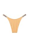 Cali-cool with plenty of glam, this cheeky bikini dazzles with shine straps that catch the sun. Low rise. High-cut leg. Logo shine strap sides. Minimal back coverage, lots of cheek peek.