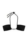 Escape the winter chill with this ruched, wireless top in patterns worth melting for. Its straps can be worn around the neck, crisscrossed, or tied together in front. Removable padding. Wireless. Convertible halter straps. Adjustable tie back. Logo charm details.