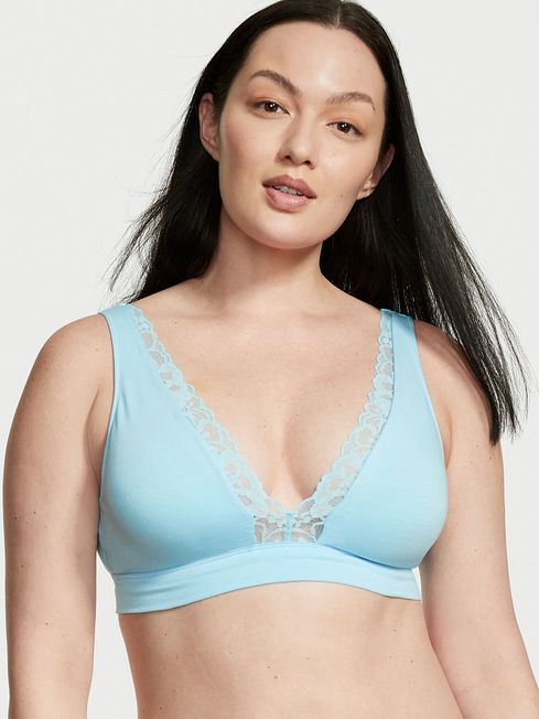 The easiest decision you'll make all day: wearing this ultra-soft and comfortable wireless bra, featuring a dramatic plunge neckline trimmed with delicate lace. Unlined. Wireless. Pull-on style. Lace-trim plunge neckline.