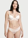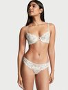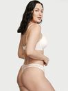 Feel confident from the inside out in a stunning thong showcasing hand-cut floral lace embroidery. So pretty you'll want to build you entire outfit around it. Low rise. Sheer mesh with floral embroidery. No back coverage. Hand wash.
