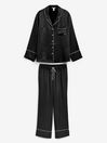 Now entering sleep mode. The silkiest pant and matching long-sleeve top with a chest pocket, notch collar and decorative piping. Easy fit Long-sleeve, button-front top hits below hips Chest pocket with embroidered ";V” Pant with drawstring waist Short: 29" inseam, Regular 31" inseam, Long 33" inseam Machine wash Imported Top ; bottom: 100% polyester exclusive of decoration