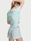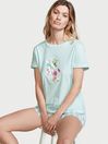 Lightweight cotton is made to keep you comfy with a classic tee and short design you'll want to lounge in all day. An elastic waistband creates your best fit while showing some logo love. Relaxed fit. Short sleeves. Logo elastic waist. Machine wash.