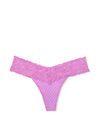 Supersoft stretch cotton meets ultra-cool comfort in a lace-waist thong panty perfect for wearing everywhere. Soft cotton with stretch. New floral lace waist. Low rise. Pure cotton panel. No back coverage.