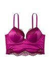 Whether staying in or going out, a cleavage-enhancing bustier-finished in luxe satin and contrasting lace-is flawless from every angle. Featuring our famous Bombshell push-up that boosts your frame by two whole cup sizes. Lift. Lining. Maximum lift. Push-up padding adds 2 cup sizes. Underwire. Straps. Hooks. Fully adjustable straps. Back hook-and-eye closure. Details Fabric Satin with Chantilly Lace Boning throughout. Gold-tone V-hardware at center front.