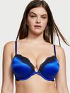 The maximum lift you love - now updated in bold color with contrasting lace trims for a luxe finish. Our famous Bombshell push-up enhances your natural cleavage by two whole cup sizes for high impact glamour. Lift. Lining. Maximum lift. Push-up padding adds 2 cup sizes. Underwire Straps. Hooks. Fully adjustable straps. Back hook-and-eye closures. Details. Fabric. Smooth microfiber with contrasting Chantilly lace. Crisscross center front.