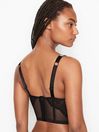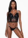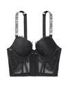 Sheer mesh panels meet beautiful floral lace in this figure-flattering bustier, finished with our signature rhinestone shine straps. Boning throughout provides structure and flatters the figure. Lift ; Lining Push-up padding adds 1 cup size Underwire Straps ; Hooks Adjustable straps Hook-and-eye closures at back Details ; Fabric Rhinestone logo shine straps Boning throughout Hand wash Imported.