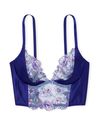 This stunning corset showcases your decolletage with alluring quarter cups and intricate hummingbird embroidery. A look too glamorous to not be seen. Lift. Lining. Unlined with a quarter cup sling for support. Underwire. Straps. Hooks. Fully adjustable straps. Back hook-and-eye closures. Details. Fabric. Boning throughout.