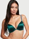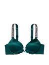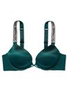 Go for the bold: this maximum- lift push-up bra showcases logo shine straps, plus a peekaboo crisscross detail at the front. Lift ; Lining Maximum lift (adds 2 cup sizes) Underwire Straps ; Hooks Adjustable straps Back hook-and-eye closures Details ; Fabric Rhinestone logo shine straps Hand wash Imported.