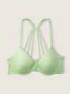 Structured, underwire cups Lightly Lined Fully adjustable front straps - with strappy back detail that can be worn as classic or racerback with convertible hook Front closure clasp Imported.