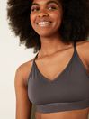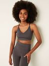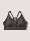 Lightly lined, wireless. Removable padding. Pull-on style V-neckline with adjustable straps. PINK logo elastic bottom band. Low impact, 4-way stretch, wicking fabric, quick dry fabric.