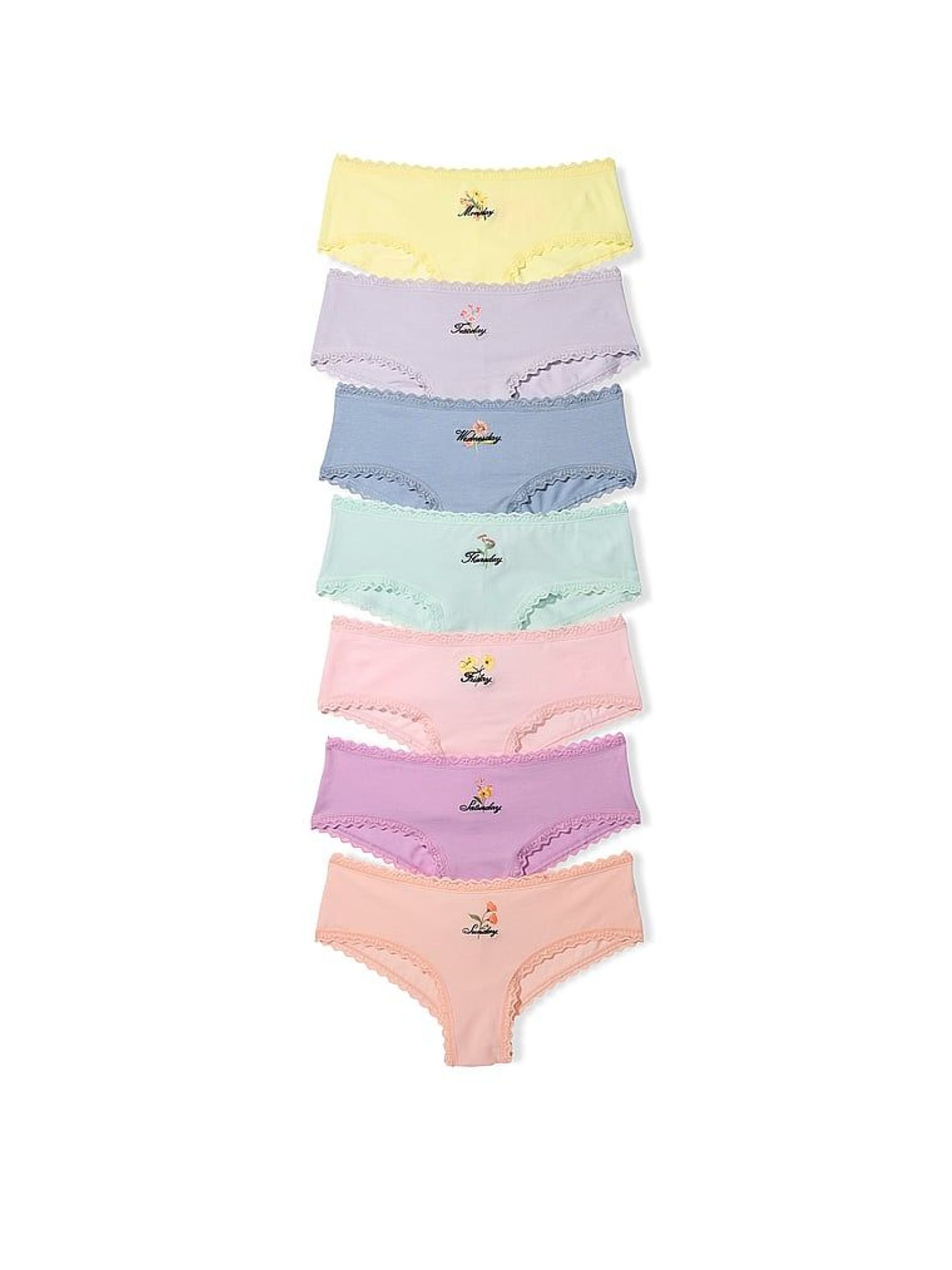 Yellow/Purple/Pink/Blue Cheeky 7 Pack Lace Trim Knickers