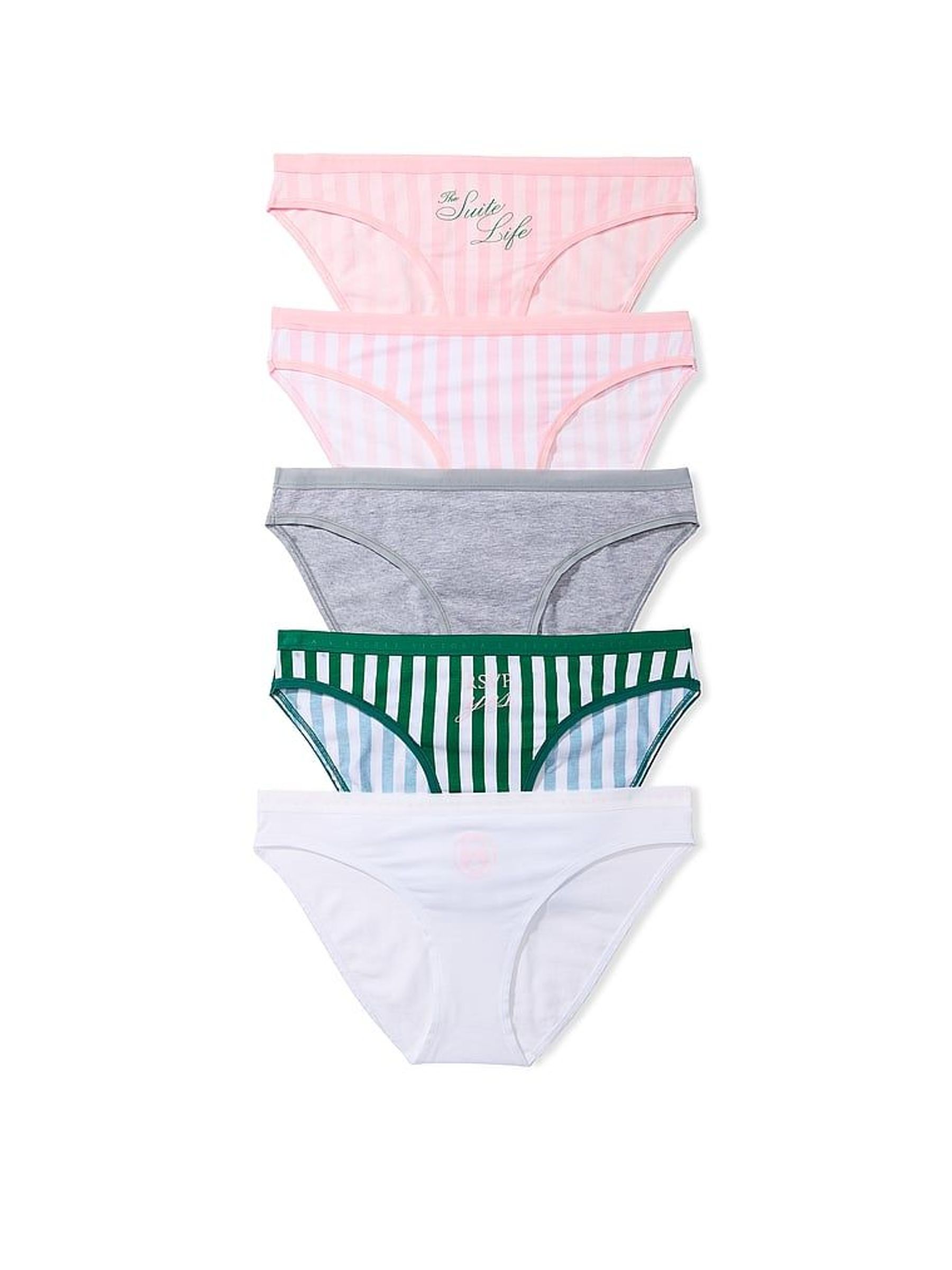 White/Grey/Pink/Green Bikini 5 Pack Knickers