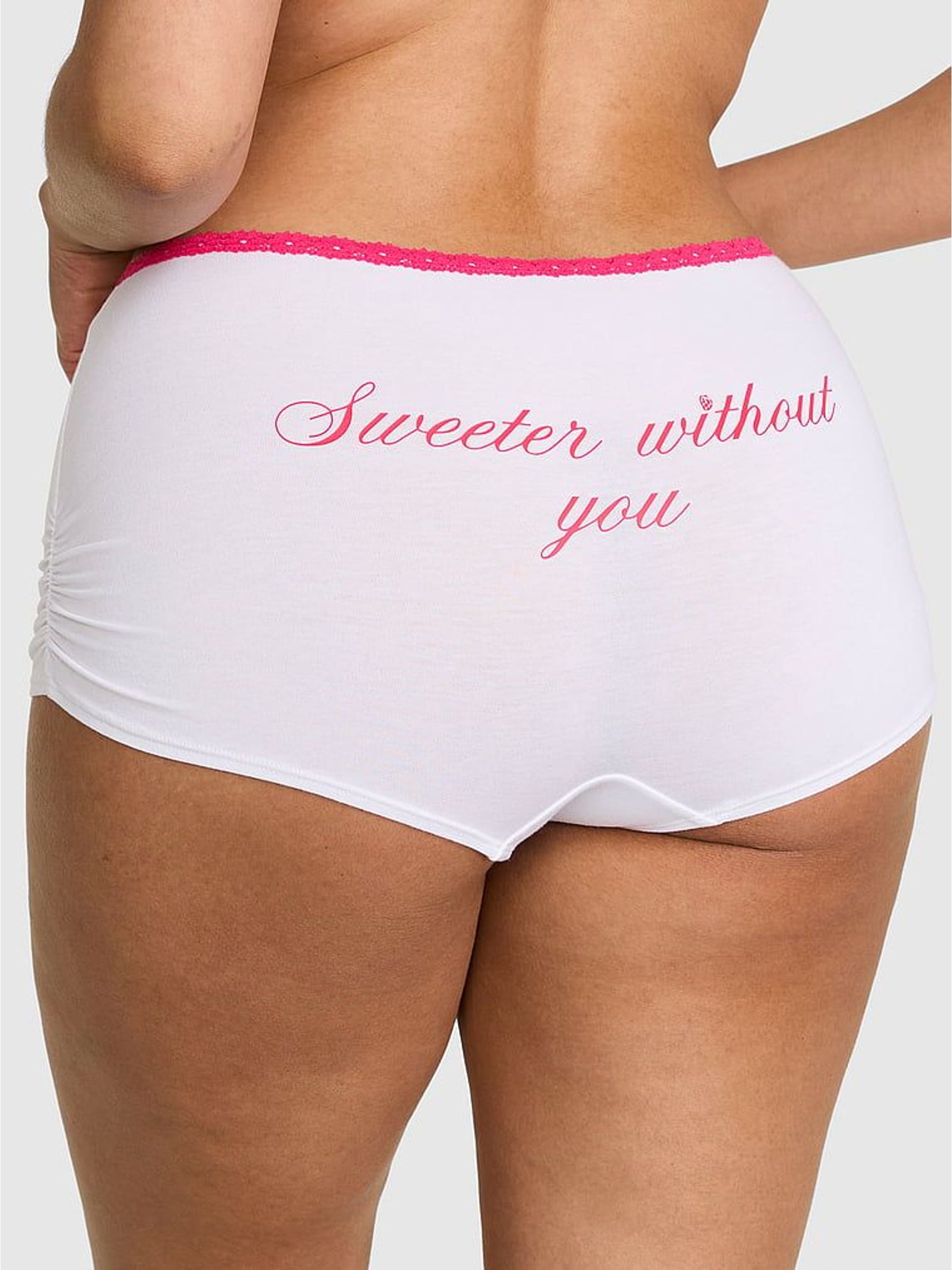 White and Pink 'Sweeter Without You' Boyshort Cotton Knickers