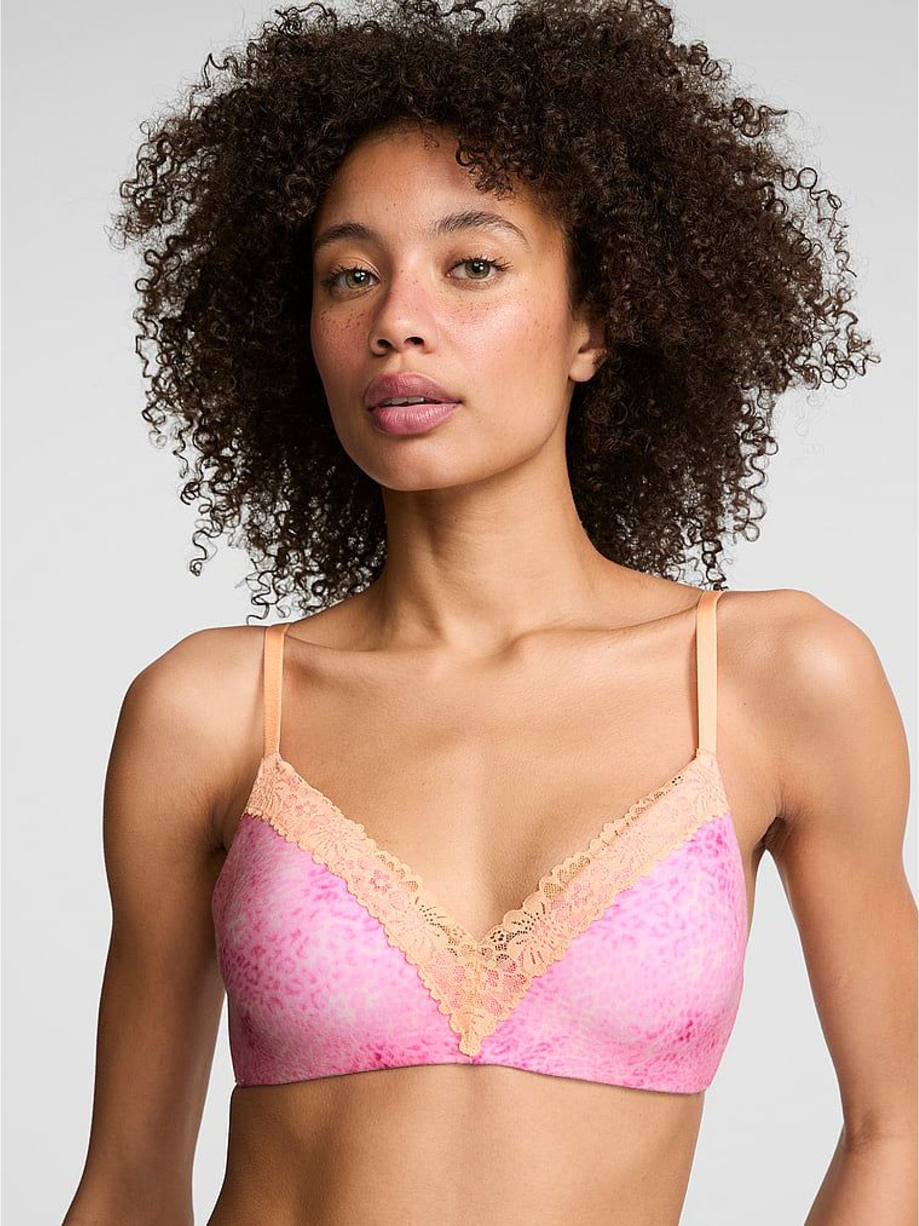 Coconut Pink Leopard Non Wired Lightly Lined Cotton Heather Lace Trim Bra