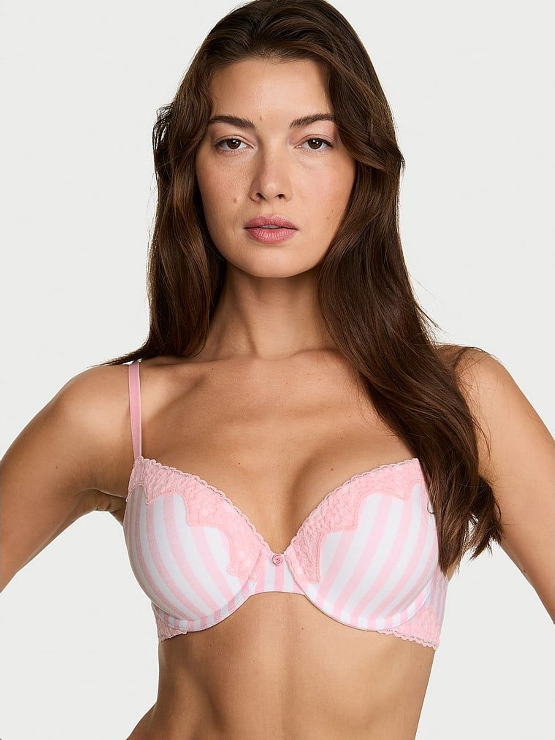 Pretty Blossom Pink Stripes Full Cup Push Up Cotton Lace Trim Bra