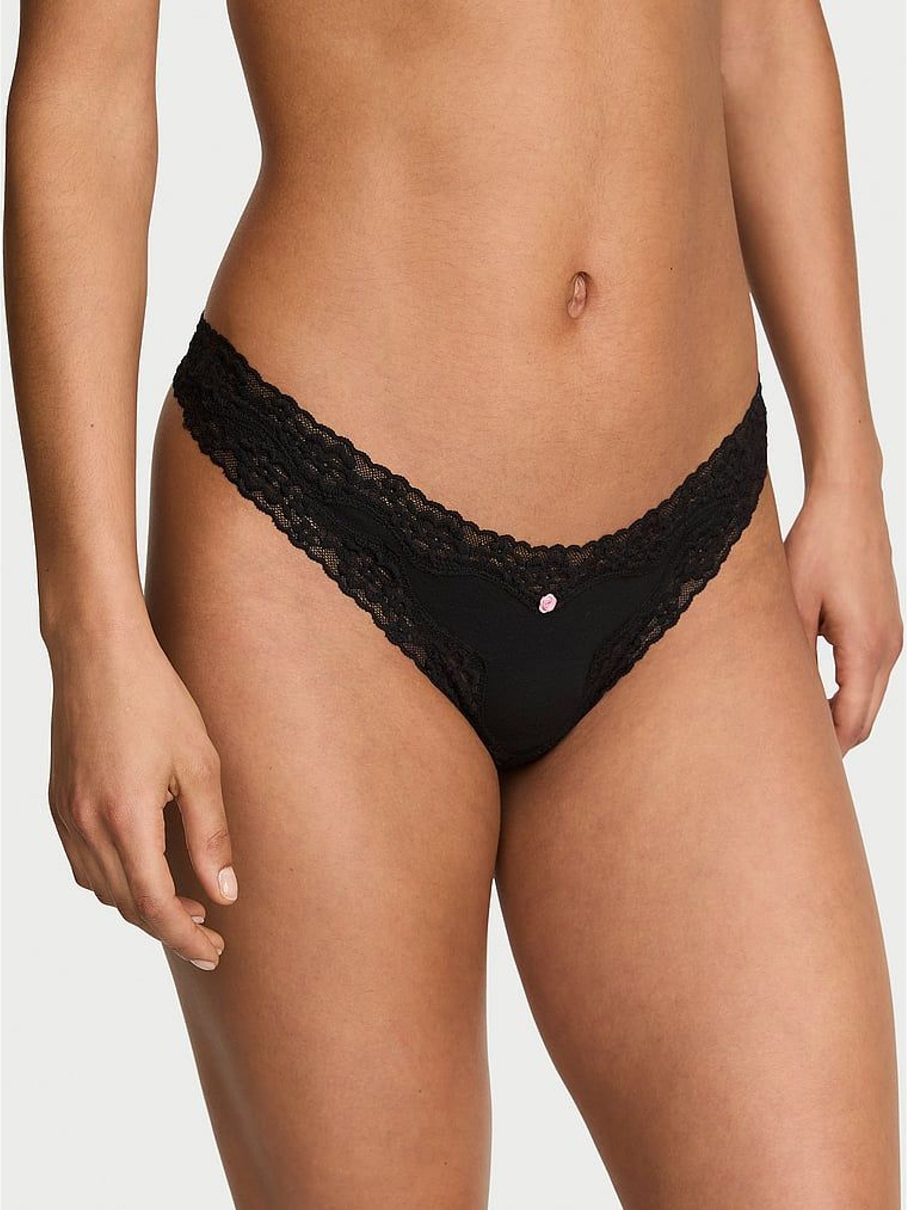 Black Thong Cotton Lace Waist Knickers