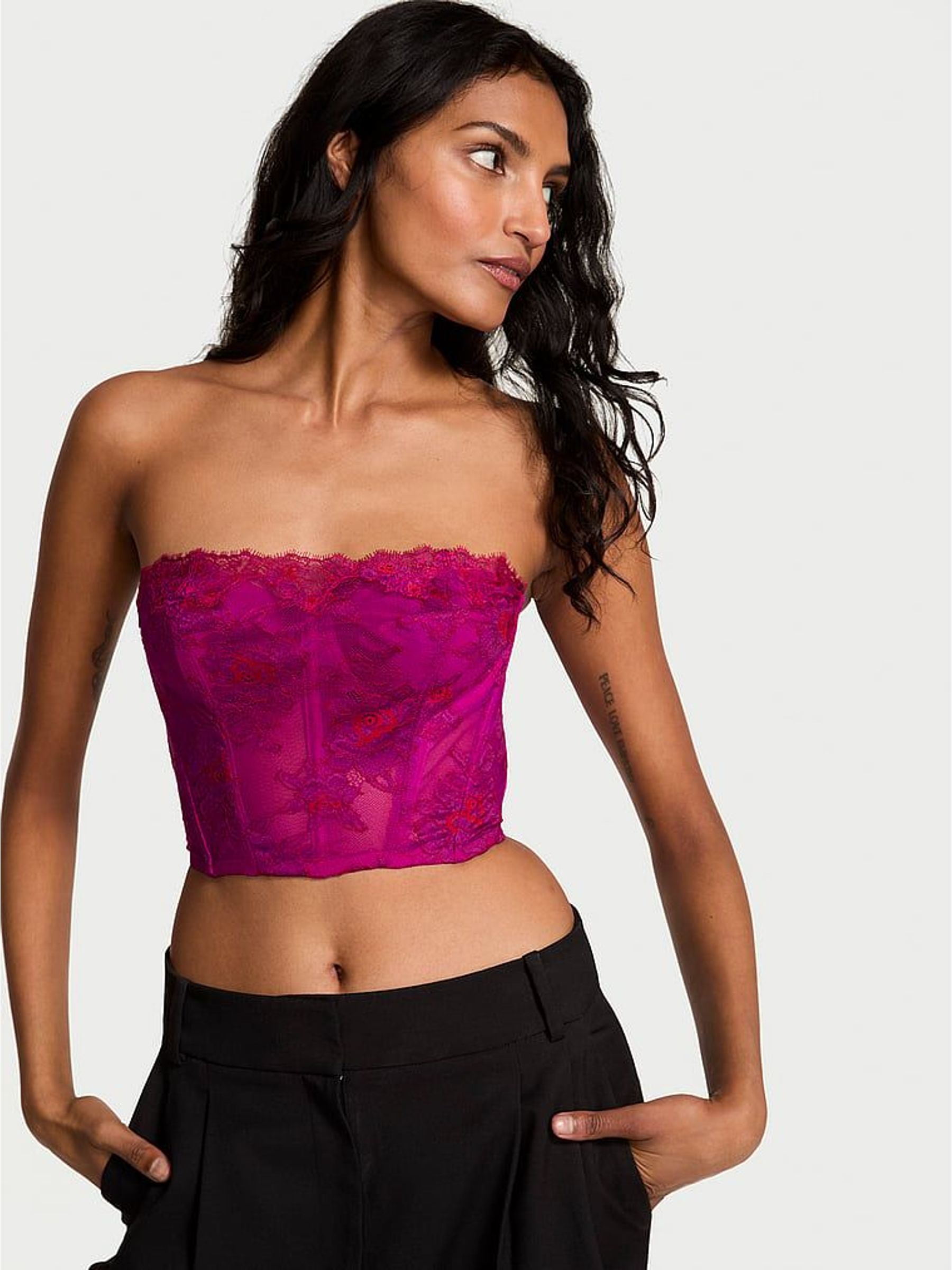 Bright Vermillion Red Roses Strapless Corset Top