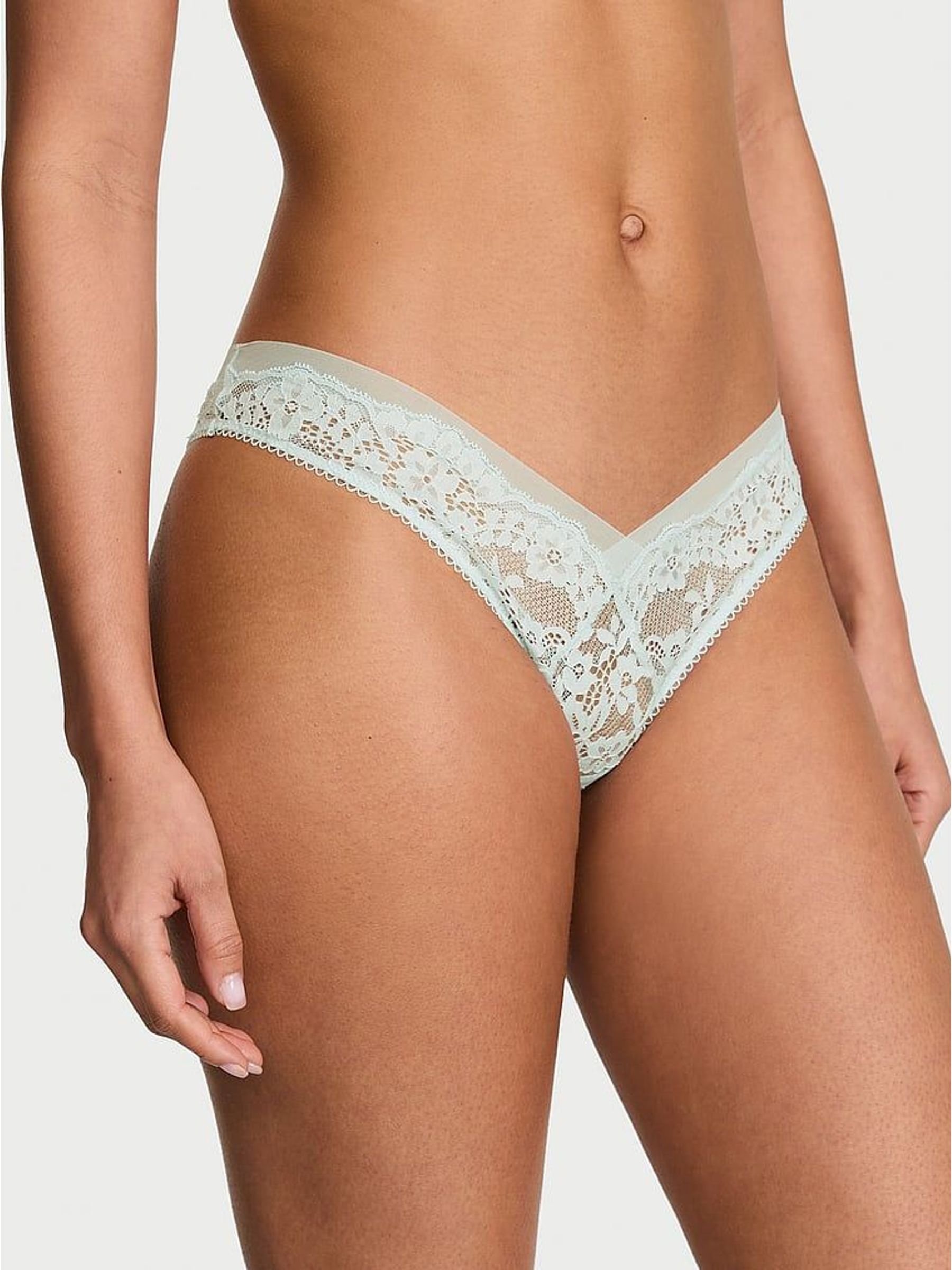 Canal Blue Lace Trim Thong Knickers