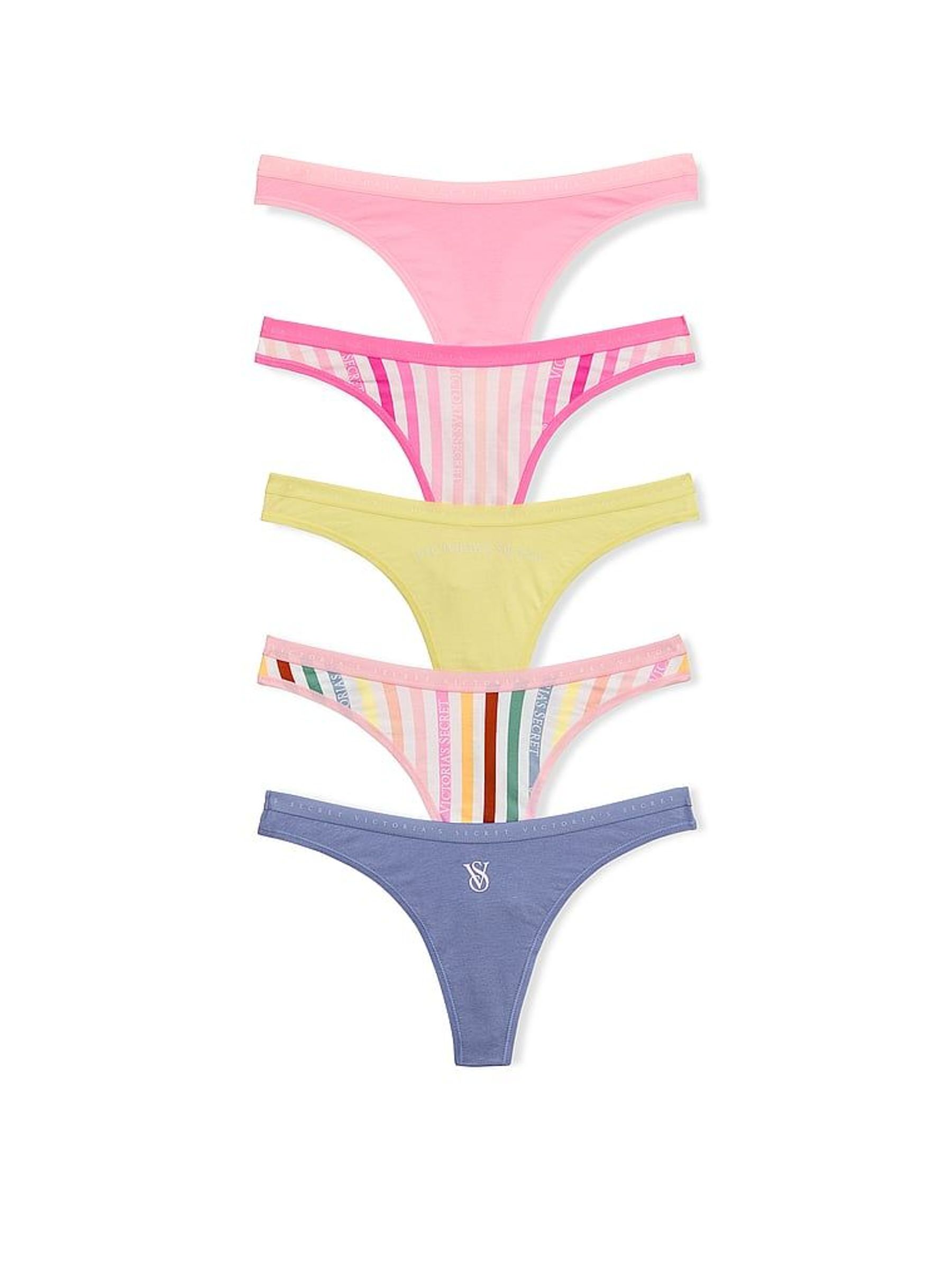 Pink/Yellow/Blue Thong 5 Pack Knickers