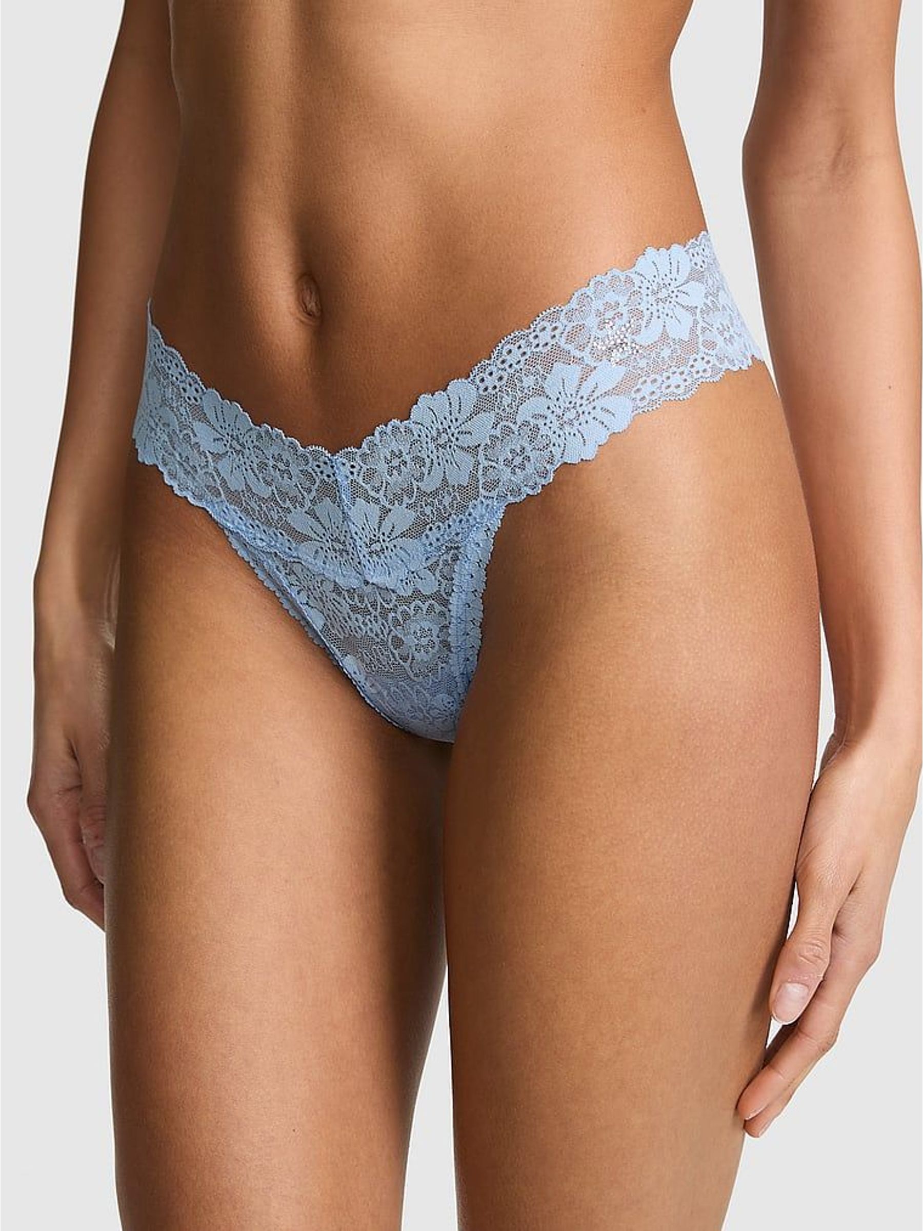 Spray Blue Diamante Mini Scoop Thong Floral Lace Knickers
