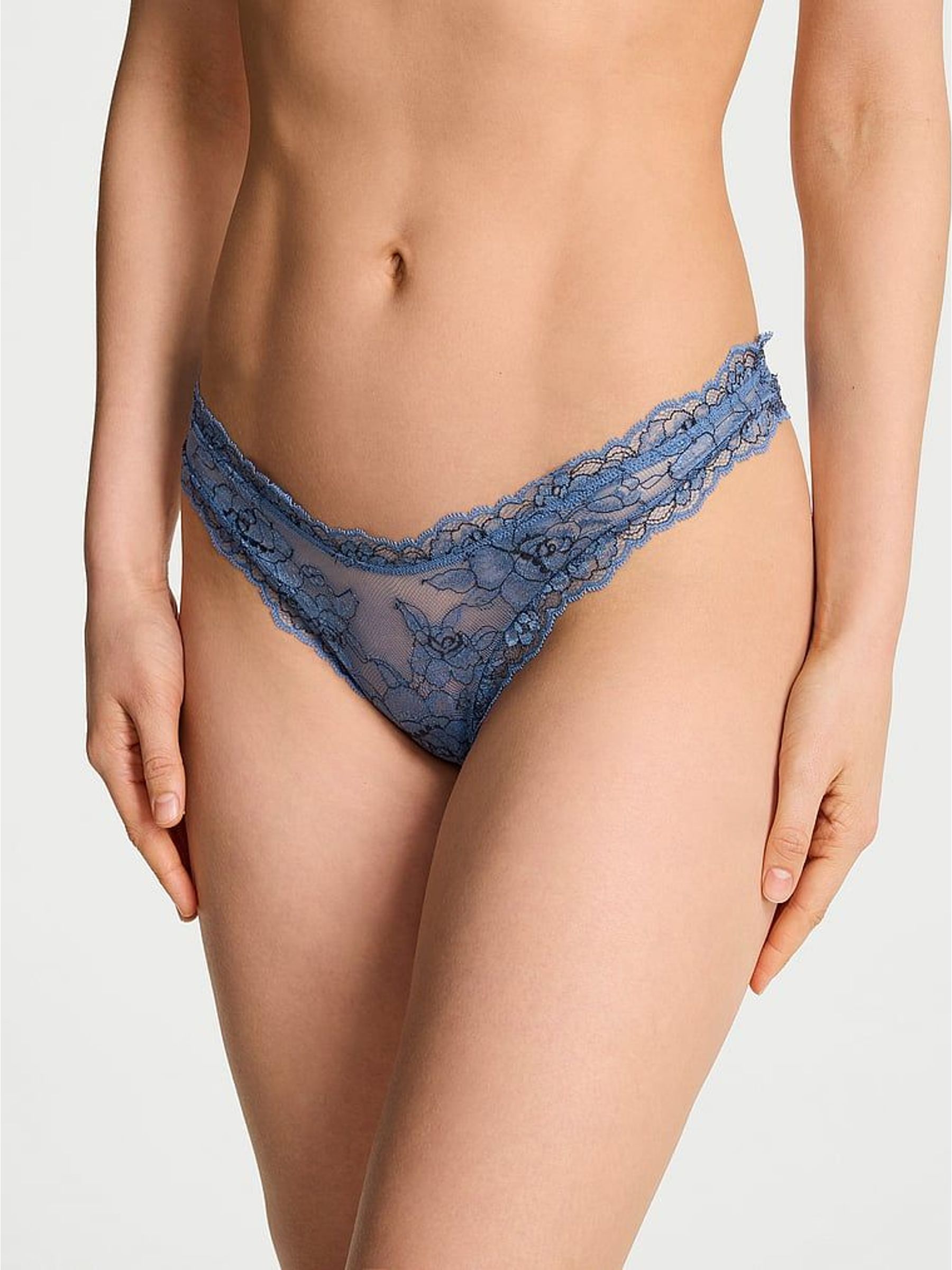 Denim Blue Rose Thong Lace Knickers